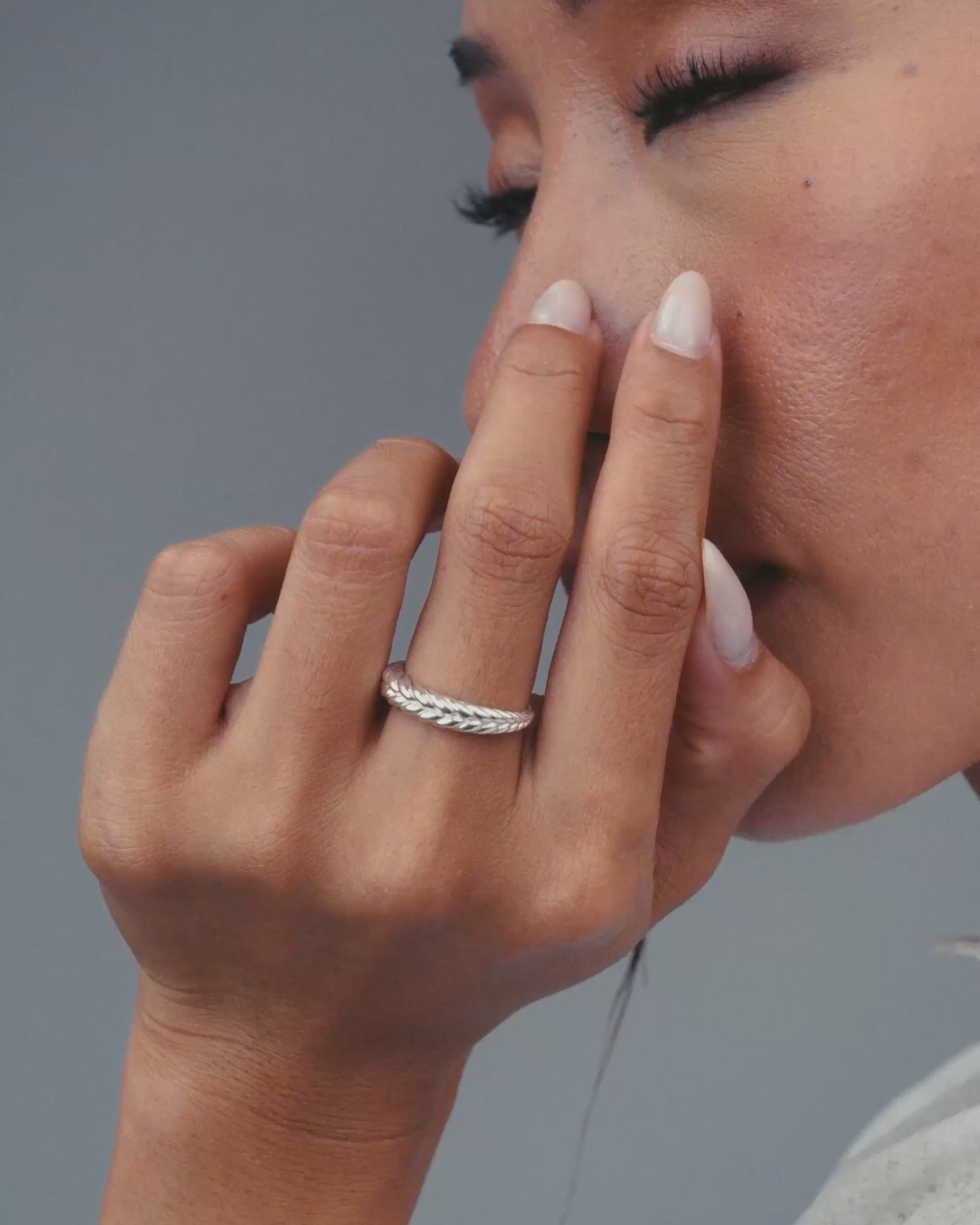 A classic sterling silver ring of integrity — a slim, graduated braid that unfurls gracefully just beyond the curve of your finger. This ring is a pleasure to wear and will find its own place on your hand. It belongs wherever you choose, stacking sweetly alongside others. Limited edition -… Read more